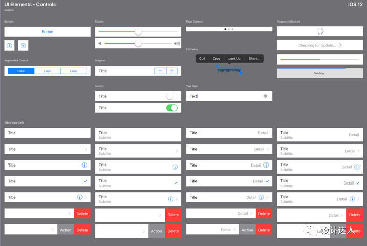 iOS 12系统已经出来,某些界面设计已经做出新的更新,为了让设计师能快速按照 iOS 的标准来设计 APP,苹果官方已经分享出相应的 UI 元素,通过这些模板,可以快速实现标准的 iOS 界面,用来设计 iPhone X/XS/XR都很不错。