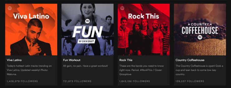 年初,双色调潮流一直由Spotify引导着,这几乎也成了该品牌的视觉符号。放大点看你会发现,Spotify的双色调用色是有一定梯度的,它平衡明亮的颜色,有时又通过使用单色相向明暗渐变。